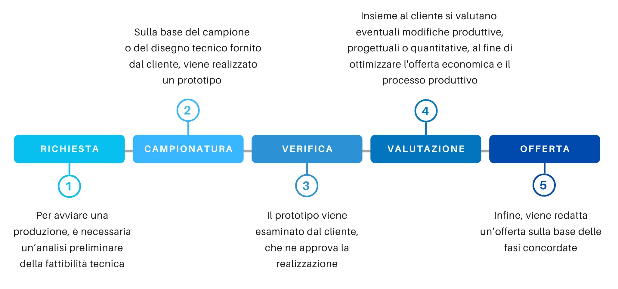 La tabella seguente sintetizza le principali fasi del nostro approccio all’assemblaggio conto terzi.